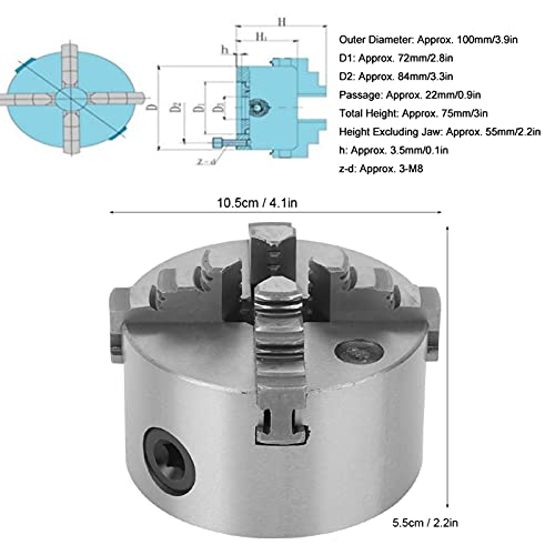 Mandrino per tornio Mandrino a 4 griffe Autocentrante indipendente Intervallo di serraggio da 100 mm/3,9 pollici Morsetto per tornitura ad alta precisione Morsetto per micro tornitura per torni