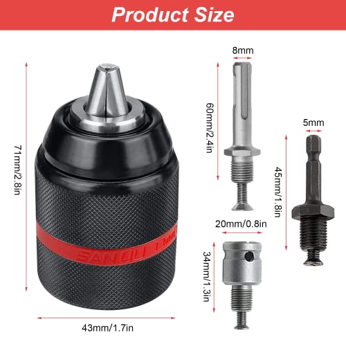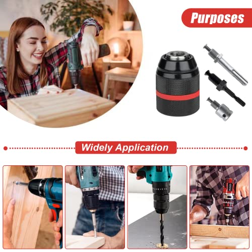 Mandrino Trapano 1.5-13 mm, Filettatura 1/2" 20UNF, Mandrino Autoserrante, Mandrino per Avvitatore, con 1/4 HEX, SDS Plus e 1/2'' Avvitatore a Percussione a Base, per Trapano Elettrico etc (4)