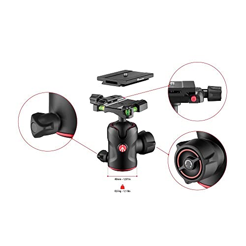 Manfrotto Compact Testa a Sfera 496 con Piastra a Sgancio Rapido MSQ6PL, Testa a Sfera Fluida per Treppiede, Stabilizzatore Camera, Telecomando, Attrezzatura Fotografica