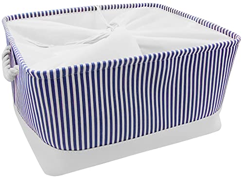 Mangata Scatola di immagazzinaggio in Tessuto di Tela Pieghevole con Manici in Corda, Cestino di stoccaggio Pieghevole per Armadio, mensola, Armadio (Strisce Blu, XLarge)