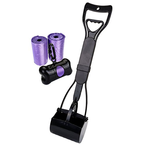 Mangostyle SET Paletta con pinza raccogli feci deiezioni Pooper Scooper per cane gatto animali domestici + Dispenser per sacchetti + 2 rotoli sacchetti - NERO