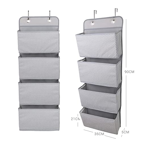 ManGotree Organizer da appendere sopra la porta, organizer da appendere, organizer per armadio, 4 tasche da appendere alla porta con 2 ganci, pieghevole (grigio opaco)