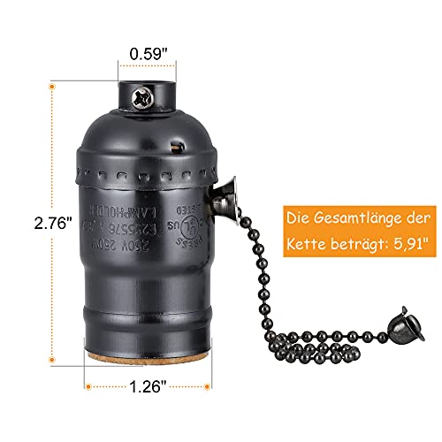 Mangsen Lpraer 6 portalampada Edison E27 vintage con catena interruttore lampada sospensione adattatore accessori (nero)
