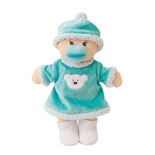 Include un ultra soft 30.5 cm Baby Doll con graziosi, ricamato facciale caratteristiche, un ciuffo di capelli, in pile morbido e un ciuccio che si attacca magneticamente