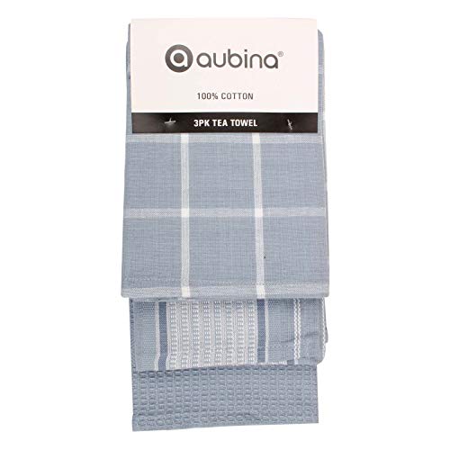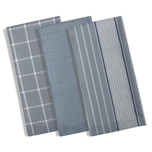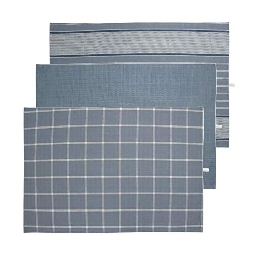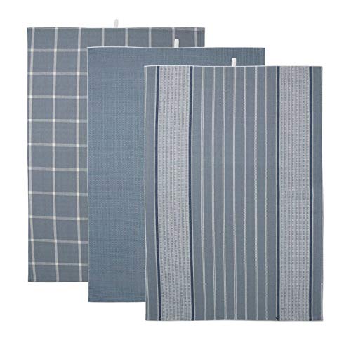Manhattan set di 3 strofinacci in cotone, strofinacci da cucina con moderno motivo a quadri e righe, strofinacci in terry assorbente, pacco da 3 Blue
