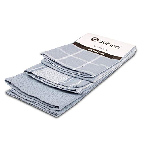 Include: strofinacci in cotone terry, 1 motivo a righe, 1 quadri e 1 tinta unita.