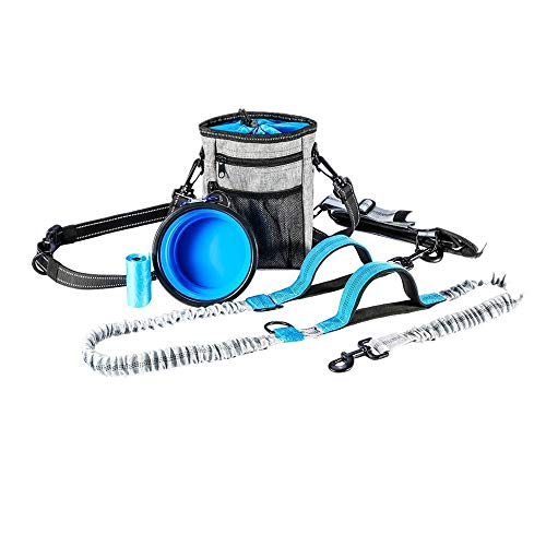 Mani Libere Guinzaglio per Cani con Borsa da Compagnia da Allenamento Riflettente 150lbs Doppia Maniglia Cintura di Vita Pieghevole Sacchetti di Rifiuti