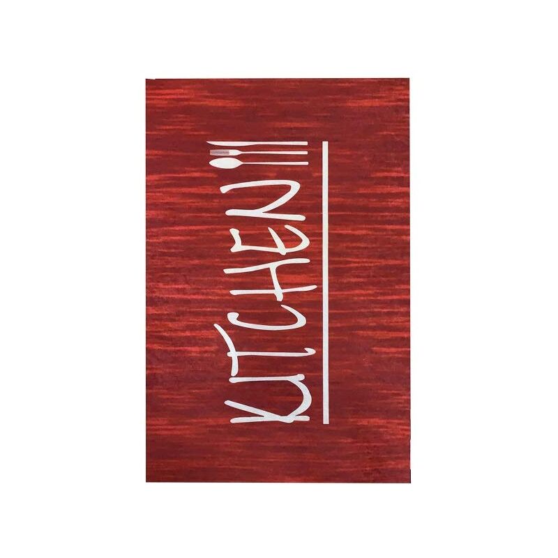 Tappeto da cucina utile e molto decorativo stampato KITCHEN! Questi tappeti sono realizzati in poliestere, morbido al tatto, che lo rende molto facile da pulire anche sulle macchie più ostinate. Tappetino antiscivolo e lavabile in lavatrice a 30 °C. Peso: 720 g/m2. Spessore: 6 mm. Disponibile in 3 misure: 60 x 90 cm. 50 x 120 cm. 90 x 130 cm