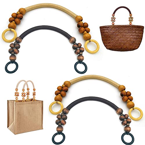 Manici per Borse con Perline,4Pcs Manici per Borse con Perline di Legno,Manici per Perline di Legno,Manico di Ricambio per Borsetta per Borsa per Fare Borsa A Tracolla Borsa Fai da Te,Marrone,Cachi