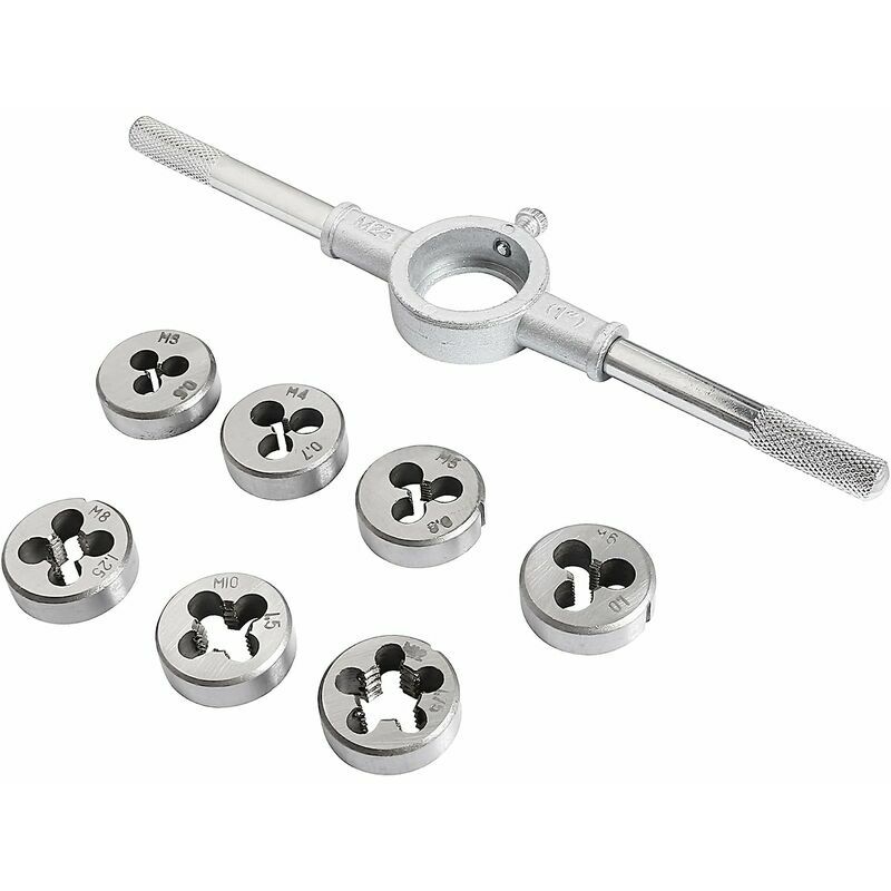 Specifiche: matrice da 25 mm (1) per capacità da 17 mm a 20 mm, con vite regolabile. Dimensioni delle matrici tonde metriche incluse: M3 x 0,5, M4 x 0,7, M5 x 0,8, M6 x 1,0, M8 x 1,25, M10 x 1,5, M12 x 1,75./p> Applicazione: per filettatura generica. perfetto per reinfilare fili esistenti in materiali duri come il metallo o per creare nuovi fili in materiali morbidi come la plastica. Ideale per lavori di manutenzione e riparazione. Caratteristiche: lo stampo offre una buona resistenza all'usura per una lunga durata. Con 4 viti regolabili, la matrice può tenere saldamente le matrici rotonde. La matrice rotonda ha un foro di bloccaggio conico. Facile da usare: la scanalatura di posizionamento della matrice deve essere allineata con la vite di fissaggio al centro della chiave della matrice e la vite deve essere inserita nella fessura della matrice e serrato. Suggerimenti: dovrebbe essere invertito ogni 1/4 o 1/2 giro per facilitare lo scarico del truciolo dal foro del truciolo. È