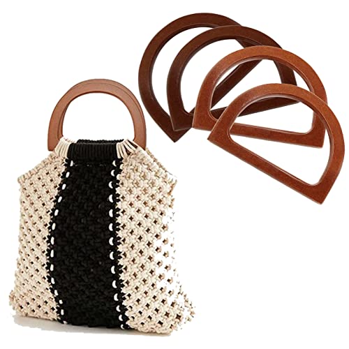 Manico per Borsa in Legno, Manico per Borse a Forma di D, Manici di Ricambio per Borsa, Manico Borsa in Legno Anelli,Manico per borsetta a D per Artigianali Borse Fai da Te Accessori, 4 pezzi