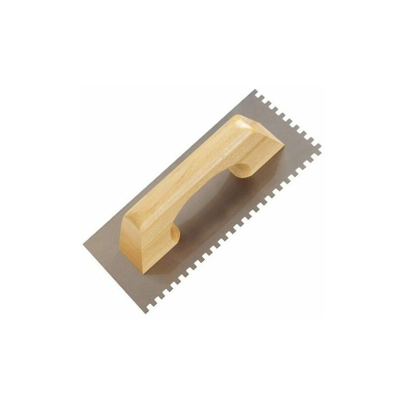 Pettine con manico in legno - Misure: 280x120 mm. - Dimensione denti: 10 x 10 mm. - Con manico in legno.
