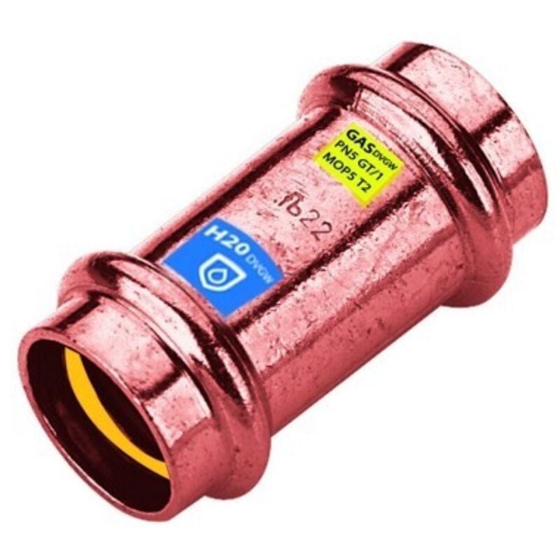 Raccordi in rame CW024A a pressare FRABOPRESS SECURFRABO. Raccordo unico per acqua e gas. Rame secondo EN1057. O-ring giallo in HNBR. Profilo di pressatura: V.(DianFlex)Misura: Diam. 42
