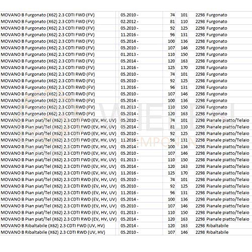 Compatibile con: RANAULT MASTER III, OPEL MOVANO B, NISSAN NV400 2.3