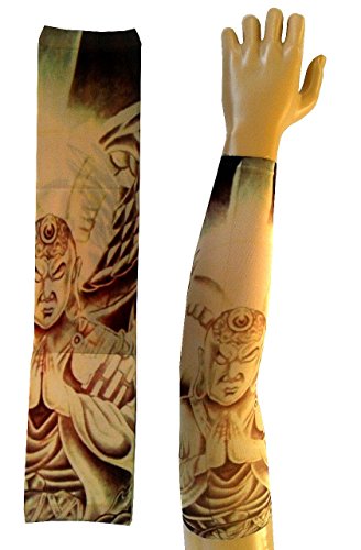 Manicotto Tattoo - Indossabile - Manica - Tatuaggio Finto - Immagine - Guerriero - Buddista - Drago - Serpente - Tatoo - Mezza Manica - Tribale W75 - Modello 13