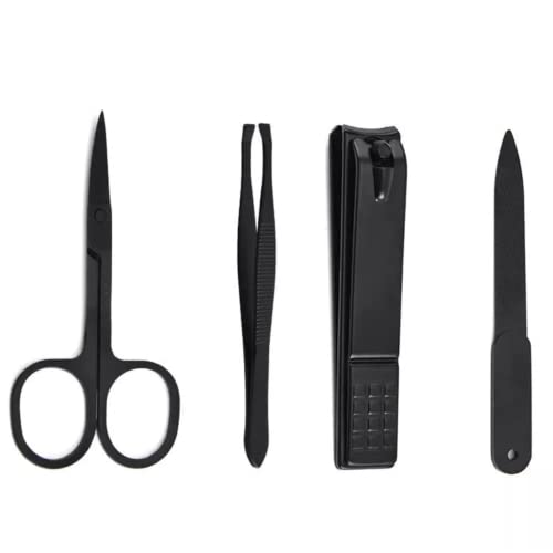 Set Manicure con Pinzetta 4 Pezzi Tagliaunghie Pinzetta Sopracciglia Professionale Forbicine per Unghie e Lima con Astuccio in Pelle Kit Manicure in Acciaio Inossidabile Idea Regalo Uomo e Donna