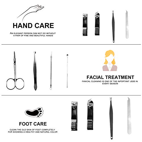 Alta qualità: il kit per la cura delle unghie è realizzato in acciaio inox di alta qualità e sono prodotti con elevati standard per garantire che ogni strumento sia bello e robusto non solo utilizzando comodo, ma anche facile da tagliare. Il bordo di ciascuno è stato lucidato ripetutamente per avere una presa comoda, la lama può rimanere affilata per molti anni dopo un ripetitivo processo di lucidatura e indurimento