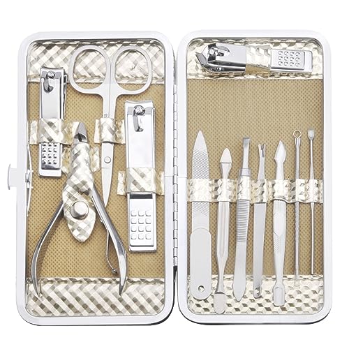 Set manicure, tagliaunghie, set da 12 pezzi, strumenti per la cura delle unghie, in acciaio inox, set professionale per la cura delle unghie, per uomo e donna con custodia da viaggio (oro rosa)