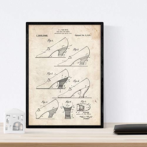 Manifesto Nacnic Tacon scarpa brevetto. Foglio con il vecchio brevetto di disegno in formato A3 e vintage sfondo