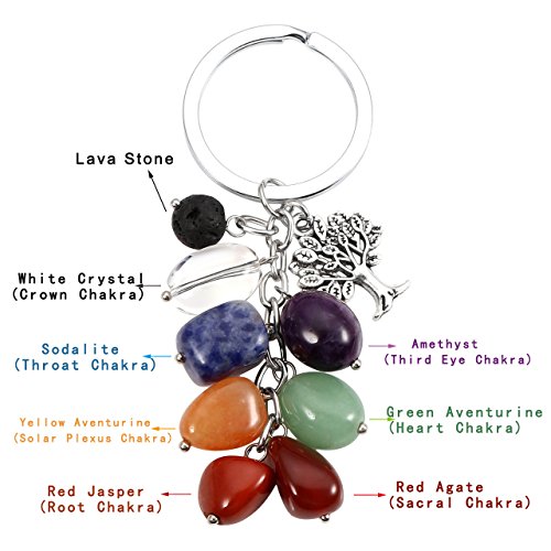 MANIFO Portachiavi con 7 gemme dei chakra, con pietra lavica e albero della vita, effetto curativo Reiki