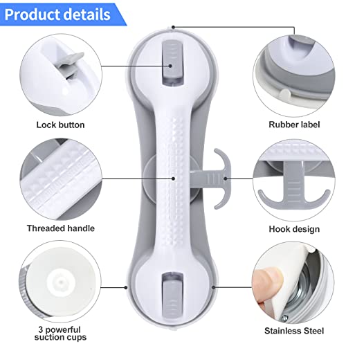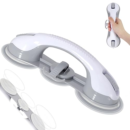Design aggiornato a 3 ventose - Realizzata in plastica ABS, la nostra maniglia per doccia a 3 ventose è più forte e durevole delle altre maniglie a 2 ventose, adatta a tutte le superfici lisce. Con esso, non si scivola anche quando il pavimento è bagnato, fornendo comfort e tranquillità in bagno, doccia, vasca e WC.