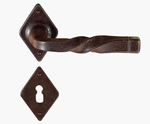 Maniglia in ferro antichizzato colore ruggine per porte interne quadro maniglia mm8 con molla di ritorno da incassare Completa per una porta dentro+fuori FM 027 NM.