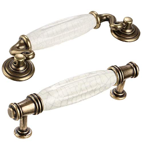 10x Maniglia a Forma di Fiocco, Stile Vintage, Maniglia a T per Porta della Cucina, armadietto, cassetto, Camera da Letto, Maniglie in Ceramica e Lega di Zinco, Centro Fori 110mm, Lunghezza 138mm