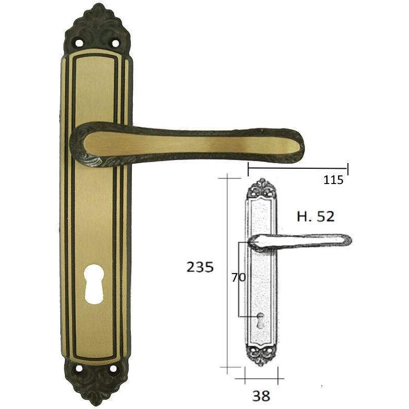 Maniglia con placca Q8/70 Modello Giglio Fumè Finitura patinè Quadro 8 mm Distanza Chiave / Quadro 7 Cm (Misura usata normalmente sud Italia Roma in giù) Misura Totale