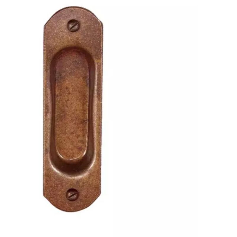 Maniglia ad incasso ovale mm.120x32 per scorrevole cieca senza foro chiave. Materiale ferro. Finitura ferro verniciato (ruggine). Foro da praticare sull'anta mm.80x28.