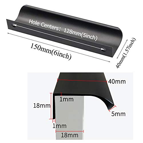 Maniglia per Mobile Cucina, Maniglia del Cassetto per Cucina e Armadi, Moderna Montaggio Nascosto Europeo, Nera, 150mm