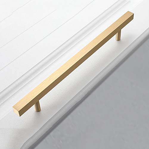 Maniglia per Mobile in Ottone Massiccio,Manico a T per Cassetto Armadi,Maniglia Barra Piazza del Gabinetto,Maniglie della Porta in Rame Spazzolato,Pomoli in Metallo per Decor,D'oro(Hole center 128mm)