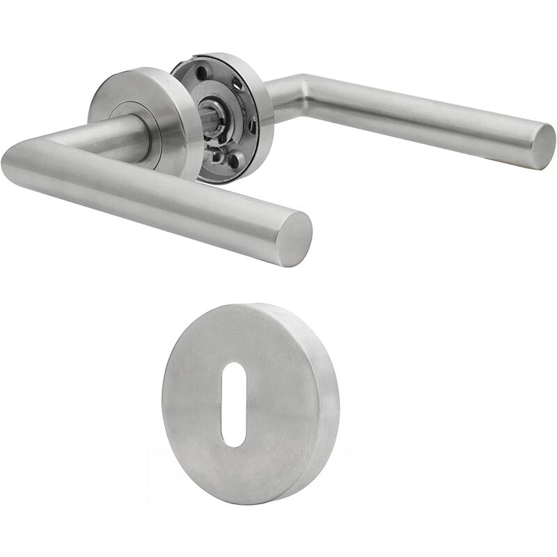 Tutta la vita - il kit maniglia della porta è testato 50.000 volte. Secondo la frequenza media di utilizzo di 20 volte al giorno, può essere utilizzato per 7-8 anni. 【Materiale del prodotto e trattamento superficiale】Tutti i materiali sono in acciaio inossidabile. La superficie è spazzolata per un look moderno. E può prevenire la ruggine nell'umidità a lungo termine. 【Buona performance】Facile da installare, facile da sostituire il tuo kit arrugginito e ingiallito. Molla con buona elasticità per evitare rumori eccessivi durante l'utilizzo e mantenere una buona stabilità nel tempo. 【Ampia gamma di usi 】La maniglia della porta è adatta per porte interne ed esterne in legno, vetro o alluminio, adatta anche per porte scorrevoli, ante di armadi, cantine, casette da giardino.