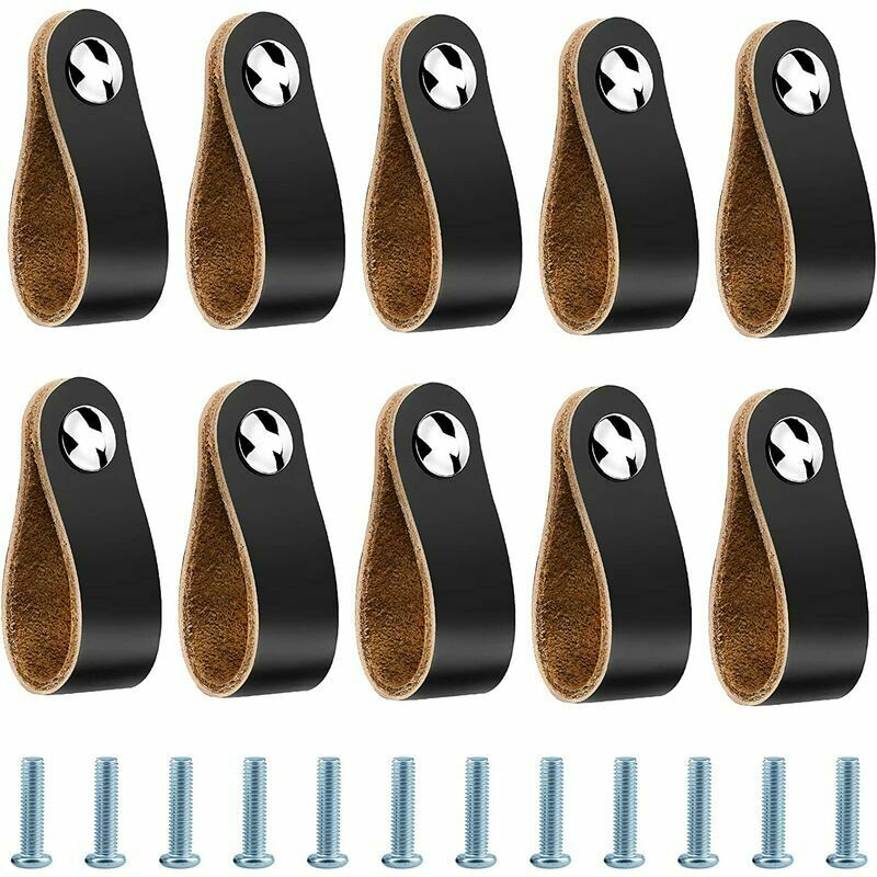 10 pezzi tiretto da cucina in pelle a foro singolo - 14 x 2,5 cm Caratteristiche: Realizzato in pelle fatta a mano. Durevole, grande tensione elastica, facile da aprire qualsiasi cassetto.Può essere utilizzato come maniglia nascosta senza preoccuparsi che la maniglia dura danneggi i bambini.Può essere abbinato a mobili dal design moderno e può anche adattarsi perfettamente agli armadi tradizionali. Adatto a vari tipi di mobili, porte, armadi, credenze, cassetti, valigie, scrivania o toeletta, cucina, bagno, ecc. . Istruzioni: Utilizzare prima un trapano per praticare un foro nel pannello della porta, allineare la maniglia della maniglia con il foro perforato, quindi inserire la maniglia nel foro perforato e avvitare la vite con un cacciavite da dietro per completare l'installazione. Oppure installali direttamente sulla parete come un gancio. Specifiche: Colore: nero Materiale: pelle Lunghezza totale: 140 mm Lunghezza piegatura: 70 mm Larghezza: 25 mm Diametro foro: 0,5 cm Lunghezza