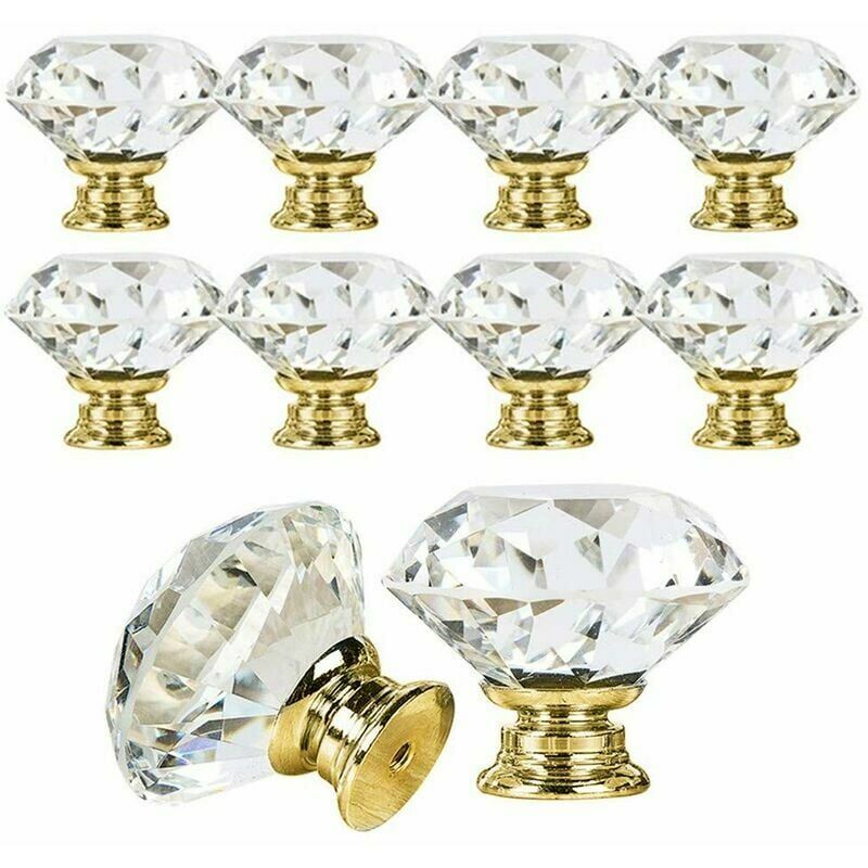Materiale: cristallo + elettrozincato Colore: oro Diametro: 30 mm Stile elegante, facile da installare, ottima scelta per decorare la tua credenza cassetto dell'armadio.La confezione include: 10 diamanti di cristallo;
