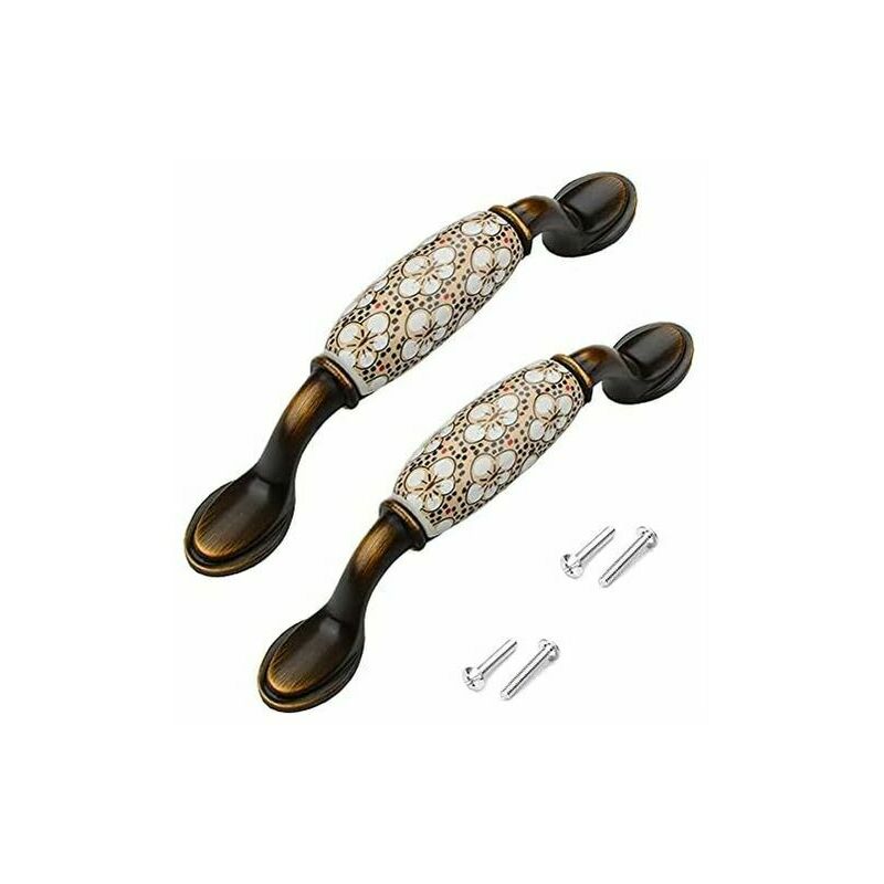 Materiale - Lega di zinco + ceramica, resistenza alla corrosione, resistenza all'usura, non facile da sbiadire, nessun graffio, nessuna sbavatura. Liscio e brillante. 【Finitura/Colore】Galvatura/Bronzo antico e motivo floreale. Elegante e bello, aggiunge una decorazione squisita alla tua casa. 【Ampia applicazione】Perfetto per l'arredamento della casa .armadio da cucina, porta dell'armadio, armadio, cassetto della scrivania, cassetti dell'armadio, scarpiera, cassettiera, libreria e così via. Dimensioni ragionevoli e presa comoda. 【Contenuto della confezione】2 * maniglie + 4 * viti. Caratteristiche: < ;