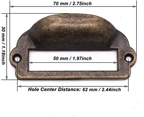 25 Pcs maniglia porta etichette vintage porta etichette per cassetto in farmacia, armadietto portadocumenti ufficio cassetti 70 x 30 mm con viti