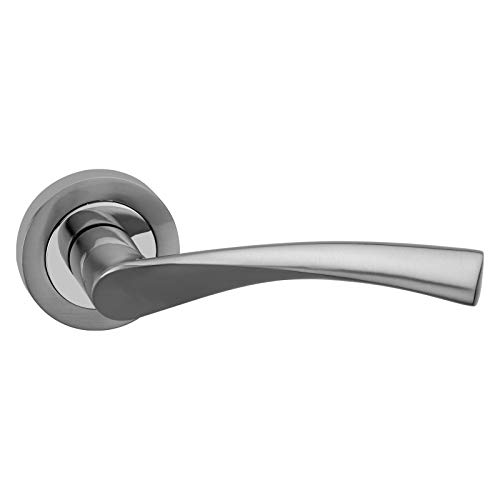 Maniglia per porta a leva su rosetta rotonda con boccone - Coppia di maniglie interne - Doppia finitura satinata/cromata