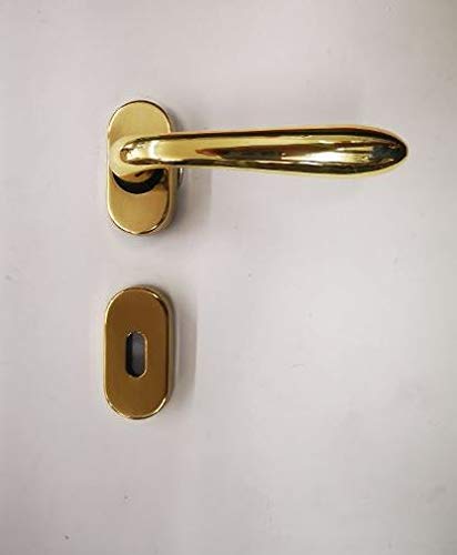 Maniglia per porta sidney 1126 in maritech oro lucido, foro patent, completa per una porta dentro+fuori, rosetta ovale