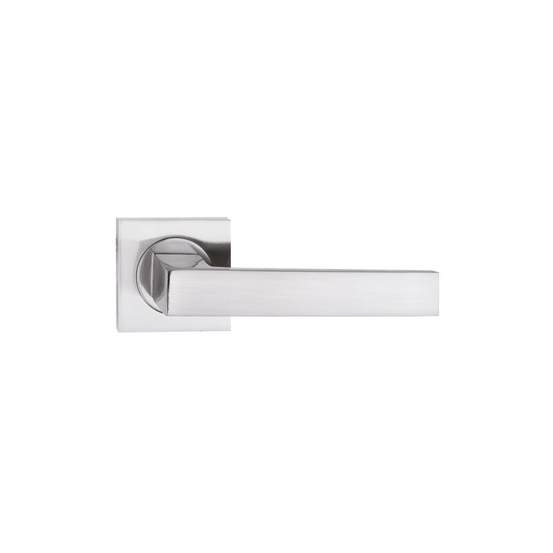 Qubik - Maniglie per porte in lamiera quadrata, nichel spazzolato. Dati del prodotto: Colore: nichel spazzolato, patina. Applicazione: per porte interne. Il set comprende: set maniglie (2 pezzi), elementi di montaggio