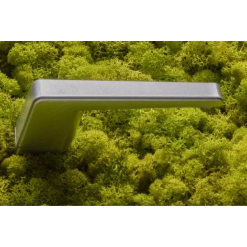Maniglia REGUITTI serie OBLIQ art.700 per porta interna in alluminio senza bocchette (da abbinare a parte, foro patent o yale) con molla in finitura grigio metal gray. La rosetta integrata alla maniglia armonizza l'impugnatura con lo stile di qualsiasi porta. l'installazione non richiede nessuna foratura speciale, ma solo l'utilizzo delle 3 viti standard. Il grano con frenafiletto garantisce un fissaggio della maniglia ancora piu' sicuro. La molla di ritorno e' integrata nella rosetta sotto impugnatura.