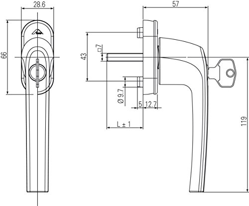 Maniglia Roto Samba serrabile 40 Nm con logo, argento naturale, lunghezza perno 32 mm