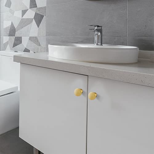 10 PCS Maniglia Tonda Monoforo Maniglia Rotonda in Ottone Massiccio Maniglie per Mobili Vintage Rotonde Solide Pomelli in Ottone A Foro Singolo Manopole per Cassetti in Inossidabile Oro con Viti