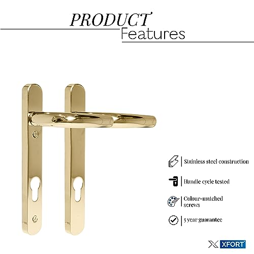 Maniglia Ultra per porta con meccanismo interno a molla PVC-U (cloruro di polivinile rigido - non plastificato), 92 PZ, 122 mm, con vite centrale, con doppia smaltatura, Set doppio, oro
