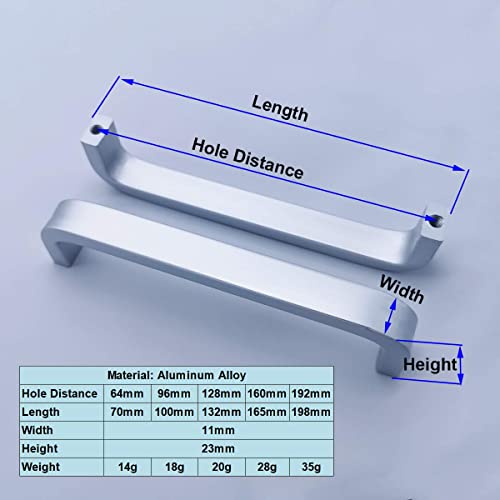10x Maniglie per ante di mobili in Alluminio, viti incluse (Lunghezza:192MM, Larghezza: 11mm)