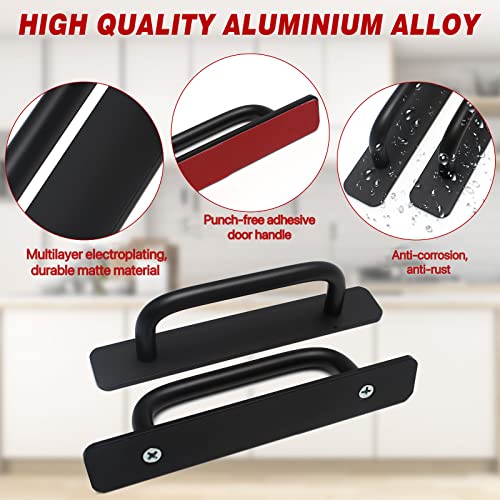 4 maniglie autoadesive per mobili, in metallo, colore nero, per armadi, porte, senza forature, per guardaroba, porta scorrevole, porta del balcone, porta del giardino (145 mm)