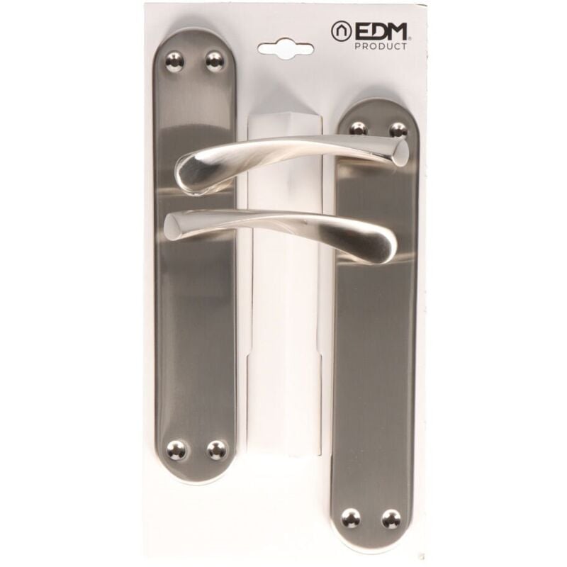 Set in blister di maniglie 707. Misura piastra 240x45mm. materiale in lamiera d'acciaio e maniglia in alluminio. finitura nichel satinato (viti incluse) Caratteristiche Presentazione: blister Viti incluse: sì Modello: 707 Finitura: Nichel satinato Materiale: Piastra in acciaio e maniglia in alluminio Misura: Piastra 240 x 45 mm < li>Tipologia: Set di maniglie