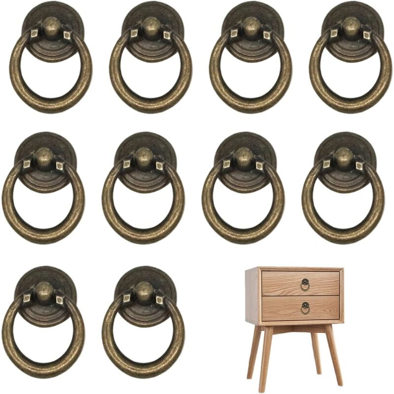 Confezione da 10 pezzi - Riceverai 10 pomelli per cassetti, forniti con viti abbinate, per la maggior parte dei cassetti, comò, armadi, porte di casa e cucina. 【Lega Premium】Le maniglie a goccia sono realizzate in lega di zinco, robusto e resistente alla corrosione. La sua superficie è galvanizzata e verniciata in bronzo retrò, liscia e uniforme. Pomelli delle porte durevoli per un uso a lungo termine. 【Sicuro e conveniente】 L'anello del pomello aderisce naturalmente alla superficie del mobile e non sporge, riducendo il potenziale rischio per la sicurezza da urti accidentali di bambini o anziani. Stile retrò: maniglie per armadietto in bronzo con design ad anello in stile europeo, design retrò, resistente, classico ed elegante, possono aiutarti a creare un look unico e completo, non facile da sbiadire. Può anche essere un'ottima decorazione di mobili per la casa o di lusso. Ampia applicazione: pomelli per mobili vintage molto adatti per armadi, librerie, guardaroba, porte, ecc.