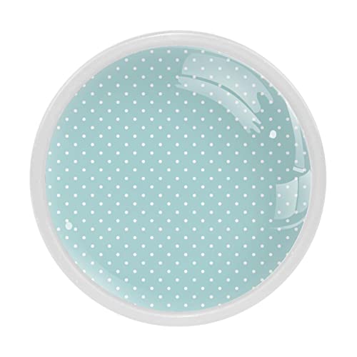 Maniglie per cassetti e cassetti con maniglie per armadio, pomelli per cassetti, a pois, colore: bianco, su armadietto blu, 4 pezzi
