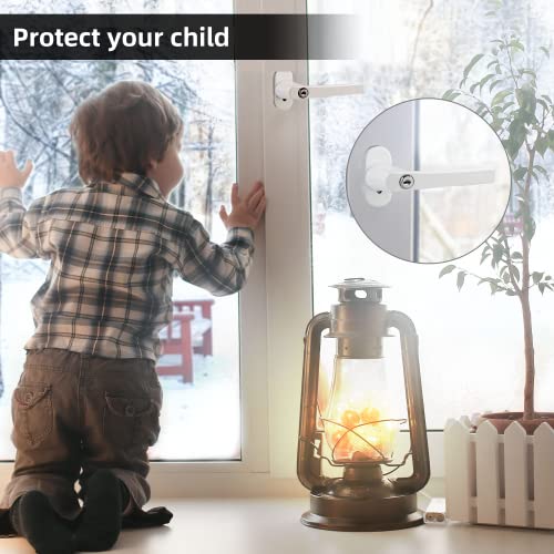 8 maniglie per finestre di sicurezza bambini, lunghezza del fusto 35 mm, con 16 chiavi, chiudibile a chiave, in alluminio inclinato e chiuso