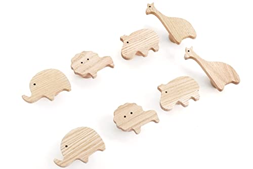 2 maniglie per mobili per bambini, in legno di quercia non trattato, con elefante, pomelli per comò, armadio, cassetto, porta, cameretta dei bambini (2, elefanti)